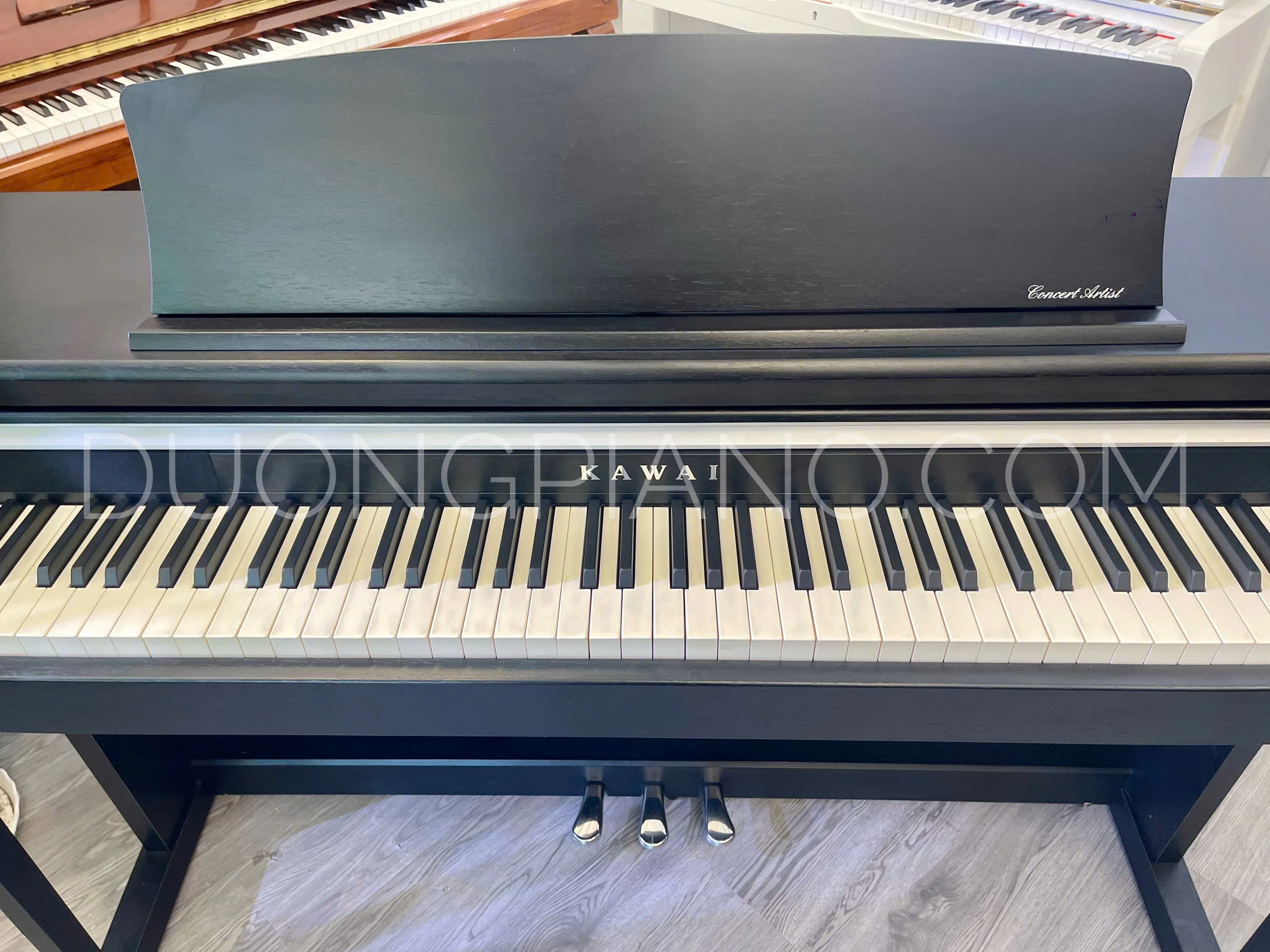 Đàn piano điện Kawai CA15 Như cái tên của nó, dòng Concert Artist là thương hiệu đàn piano kỹ thuật số hàng đầu của Kawai được phát triển với mục tiêu trở thành một chiếc đại dương cầm hòa nhạc được các nghệ sĩ sử dụng được trang bị bàn phím gỗ, hệ thống nguồn âm thanh, cơ chế hoạt động của bàn đạp và thiết kế bên ngoài chất lượng cao tiến gần hơn một bước với cây đại dương cầm.