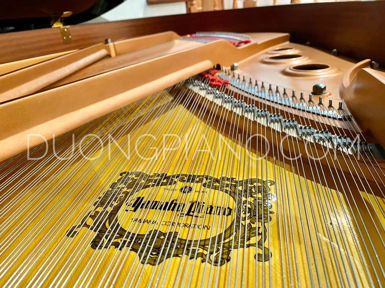 Dây đàn được làm từ thép chất lượng cao, còn dây bass với lõi đồng, tất cả đều do Yamaha tự sản xuất, đảm bảo độ chuẩn xác và độ bền vượt trội. Cấu trúc khung sắt V-Pro Plate (khung sắt đúc chân không) không chỉ tạo nên sự chắc chắn, chống cong vênh mà còn góp phần ổn định dây đàn, giúp cây đàn giữ được dây tốt và duy trì sự ổn định âm thanh lâu dài. Người chơi có thể cảm nhận rõ sự ngân nga, lắng đọng của âm thanh sau mỗi lần lướt phím, thể hiện trọn vẹn mọi cung bậc cảm xúc.