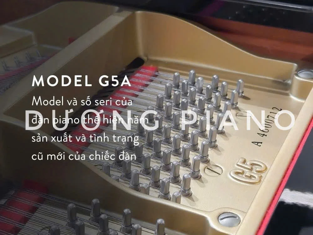 Grand PianoYamaha G5A là mẫu đàn được sản xuất từ năm 1985 đến năm 1988. Được sản xuất tại nhà máy Hamamatsu ở Nhật Bản. Đây là nơi Yamaha sản xuất tất cả các loại đàn piano chuyên nghiệp của họ, bao gồm cả CFX. Yêu cầu nhiều quy trình thủ công bởi những người thợ thủ công lành nghề, dẫn đến những cây đàn piano có chất lượng tổng thể cực kỳ cao.