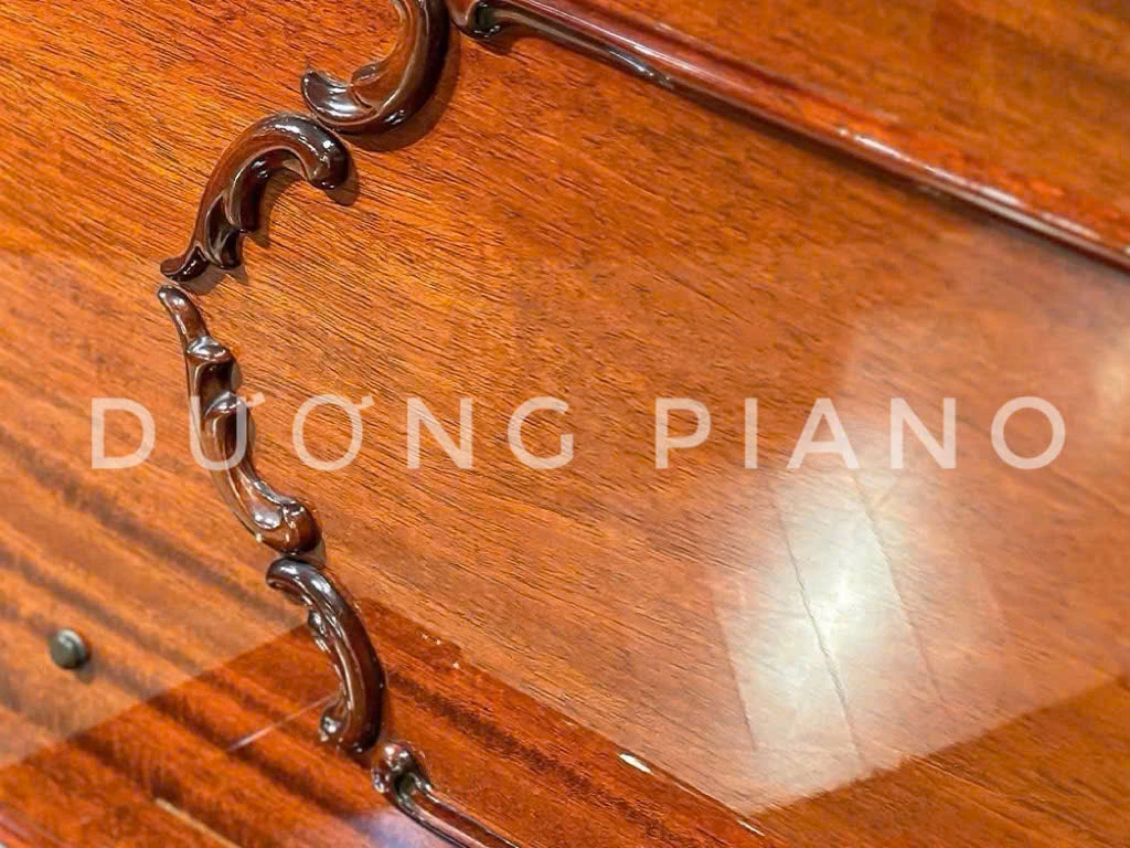 Vỏ đàn được hoàn thiện bằng lớp sơn bóng Polyester chống trầy xước, bảo vệ màu gỗ Mahogany quý phái. Bên trong, Yamaha sử dụng các loại gỗ cứng chọn lọc và nỉ búa cao cấp để đảm bảo độ bền. Đây là minh chứng cho chất lượng của một cây đàn Piano cơ đến từ Nhật Bản.